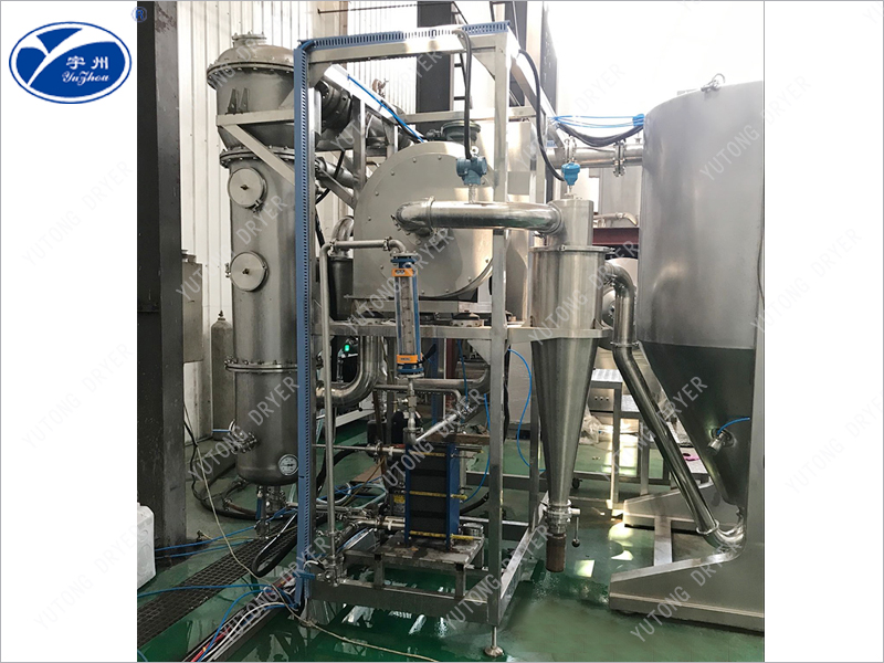 Closed-loop spray dryer is a special equipment for drying organic solvent slurry. The unit is made of nitrogen (or other inert gas) as a drying cycle gas, the drying process material can prevent oxidation, while the organic solvent can be recovered. Closed cycle spray dryer is generally used for the powder drying of ethanol, acetone, hexane and other organic solvents. The equipment adopts explosion-proof design and the drying process is safe and environmentally friendly.