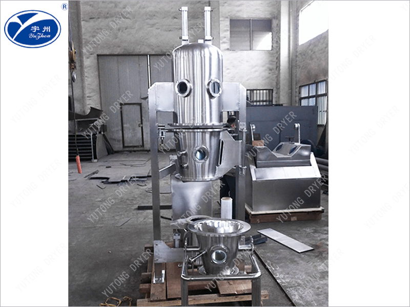 The fluidized bed air distribution plate is made into a special annular plate structure, with each plate forming a stacked form, allowing the airflow to pass through the gaps between the blades, forming a circulating high-speed airflow, thereby making the material move in a regular vortex like manner. The adhesive or coating liquid is sprayed into the regular flow material layer through the pneumatic nozzle installed on the side wall, thereby turning the powder into particles or obtaining a continuous and uniform film coating.