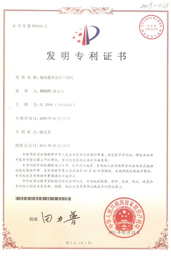 發(fā)明-脫水蔬菜連續(xù)干燥機