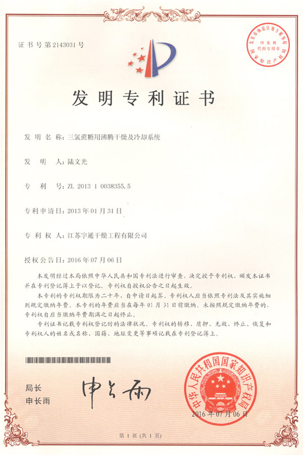發(fā)明-三氯蔗糖用沸騰干燥及冷卻系···