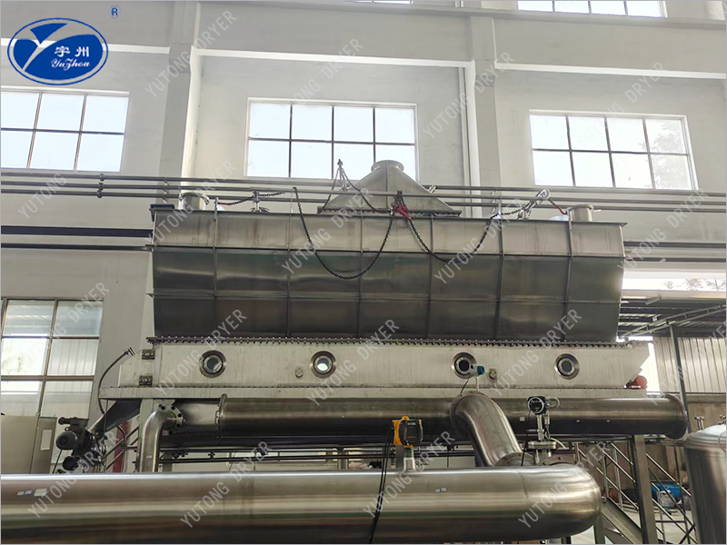 4、閉路循環(huán)沸騰干燥機帶有翻板機構(gòu),實現(xiàn)了在全密閉條件下進行出料,大大降低了工人的勞動強度與操作車間內(nèi)完全無粉塵,車間環(huán)境好,自動化成度高。