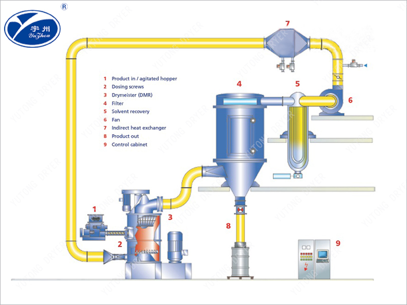 閉路循環(huán)閃蒸干燥機(jī)是江蘇宇通在借鑒國外先進(jìn)技術(shù)基礎(chǔ)上研發(fā)的一種新型密閉式干燥機(jī)。閉路干燥系統(tǒng)是在密閉的環(huán)境下工作,干燥介質(zhì)為惰性氣體提高了該設(shè)備的安全系數(shù),實(shí)現(xiàn)對(duì)制藥、生化、化工、生物等技術(shù)領(lǐng)域含有機(jī)溶媒、溶劑物料的干燥生產(chǎn)與溶媒、溶劑的回收,具備安全生產(chǎn)、高效、低耗節(jié)能減排的實(shí)用性。