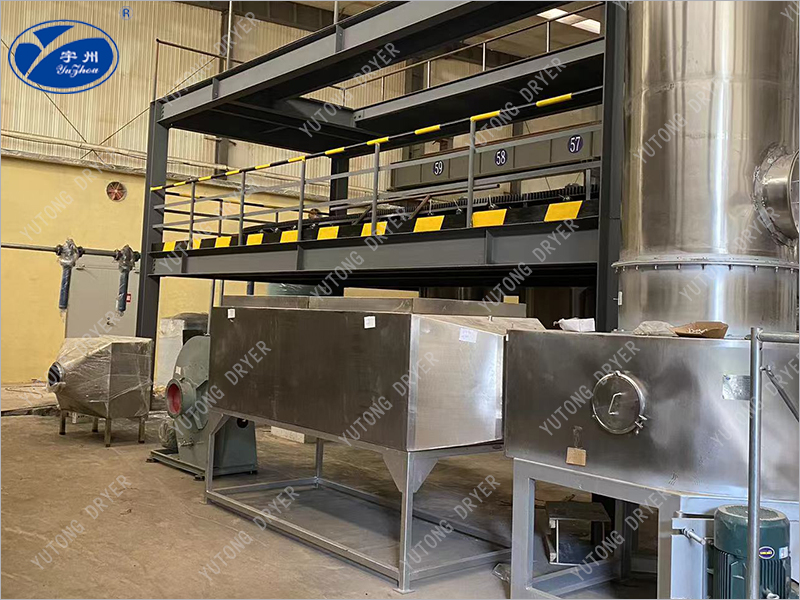 Окружающий воздух, прошедший начальную и промежуточную фильтрацию, продувается воздуходувкой сухой системы в паровой радиатор и нагревается до температуры, установленной в процессе. Затем он входит в сушильный концентратор с флэш - испарением и вместе с сухим фильтром, который подается в сухой хост через спиральный питатель, завершает процесс сушки теплоносителя в сухом хосте. Газоустойчивая смесь фильтруется мешковым пылеуловителем, а материал отделяется от газа в системе сушки и сбрасывается в систему сушки. Выхлопные газы выбрасываются в атмосферу из вентиляторов.